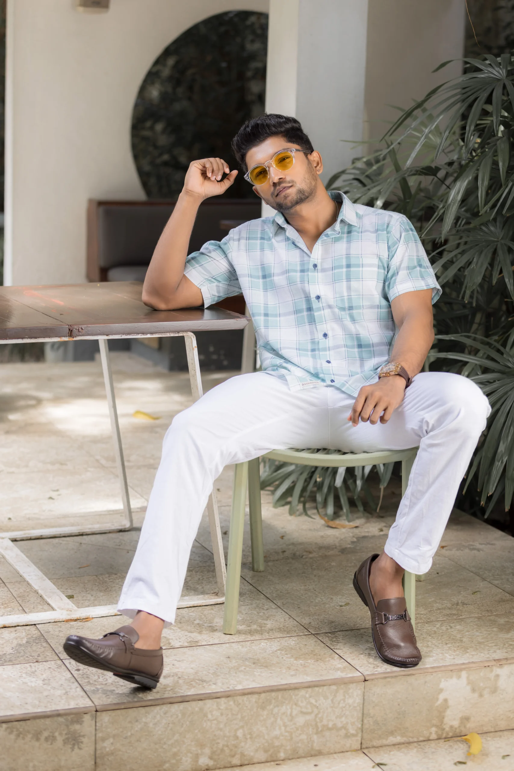 Escape to effortless elegance with the Coastal Plaid Resort Shirt by Giorhudson. Its soft check pattern and Subtle tones embodies seaside sophistication, offering a lightweight, breathable fabric ideal for warm days and relaxed evenings. Designed for men who carry timeless charm with modern ease.